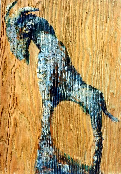 Le Raccolte di Attilio - Quadri mostra1969 - 70x50 - olio su compensato di pino ruvido - l'antenato del camoscio