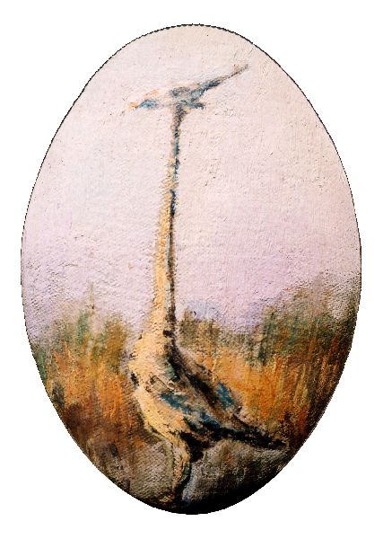 Le Raccolte di Attilio - Quadri per anno1976 - ovale 18,5x13 - olio su tela - animali fantastici, uccello dal collo lungo